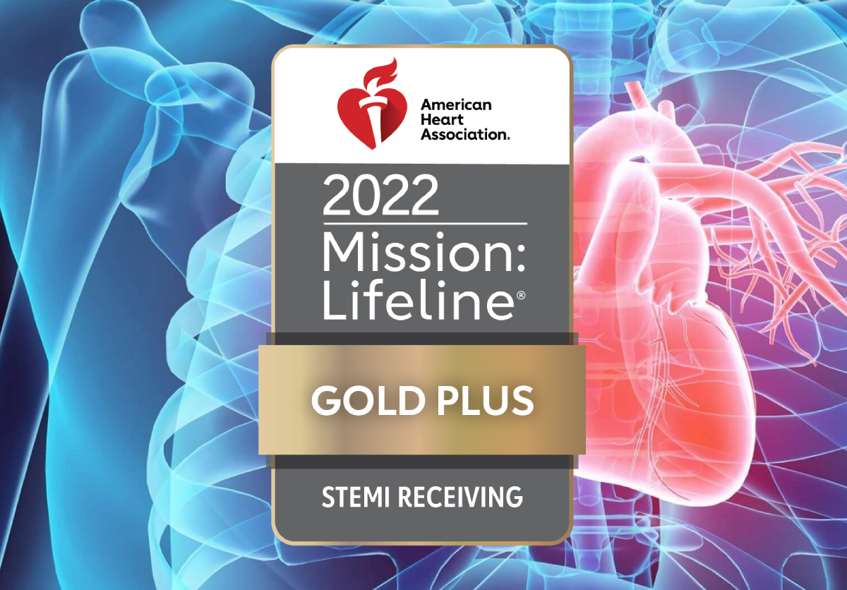 The American Heart Association presents the Mission: Lifeline STEMI Receiving Center Gold award for implementation of quality treatment, care coordination for heart attack patients Hutch