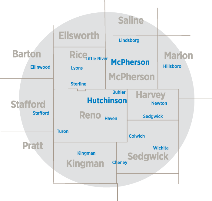 We go well beyond our name, serving a 50-mile radius outside of Hutchinson. We provide services in Reno, McPherson, Rice, Harvey, and Kingman counties, as well as areas within Stafford, Pratt, Barton, Saline, Ellsworth, Marion, and Sedgwick counties.